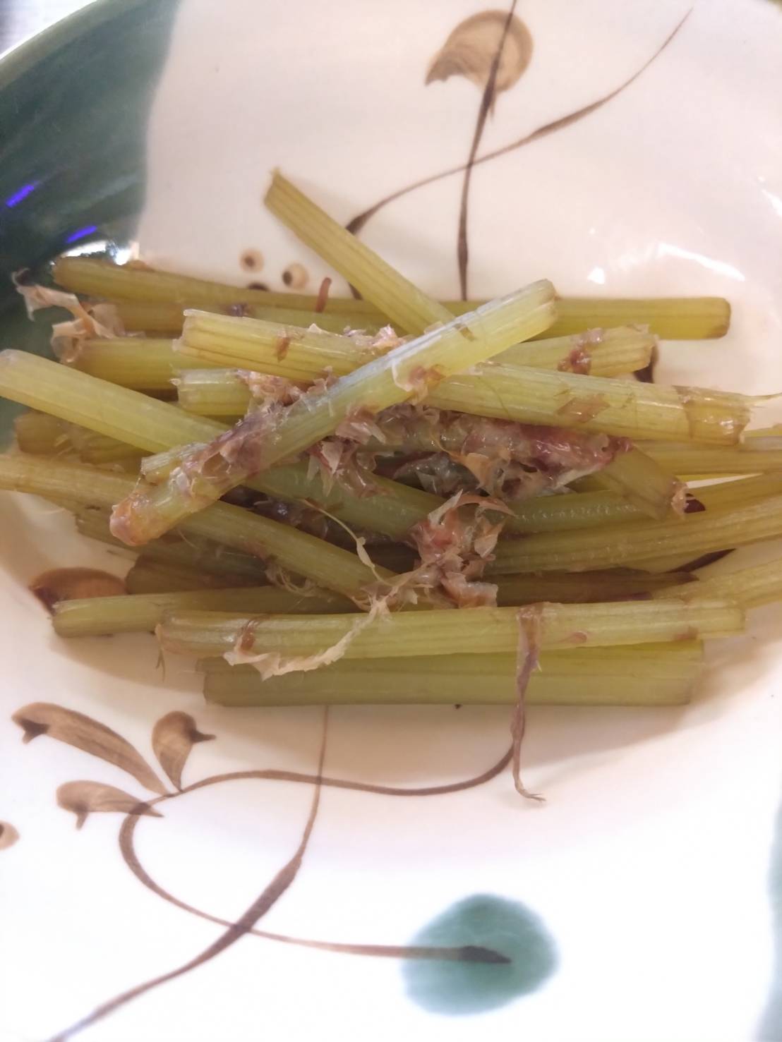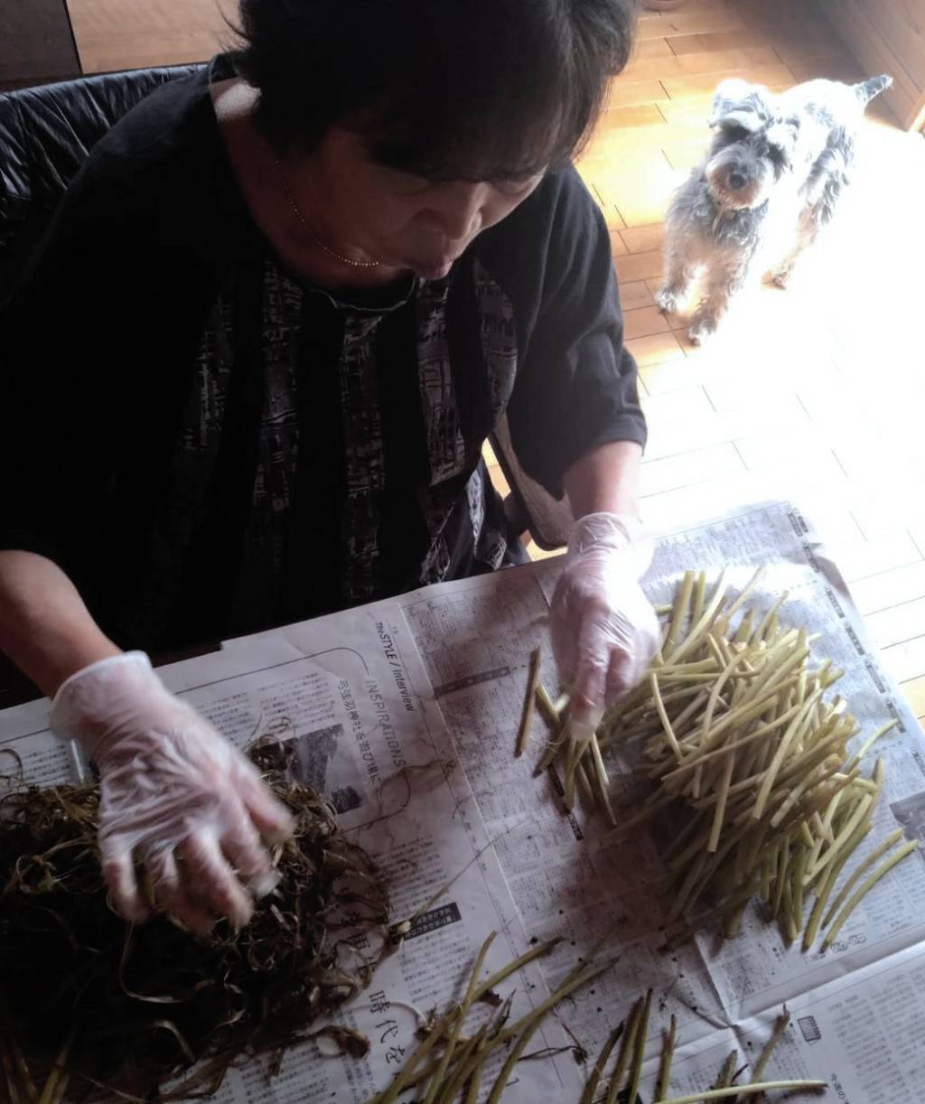 お母ちゃんとフキの皮むき