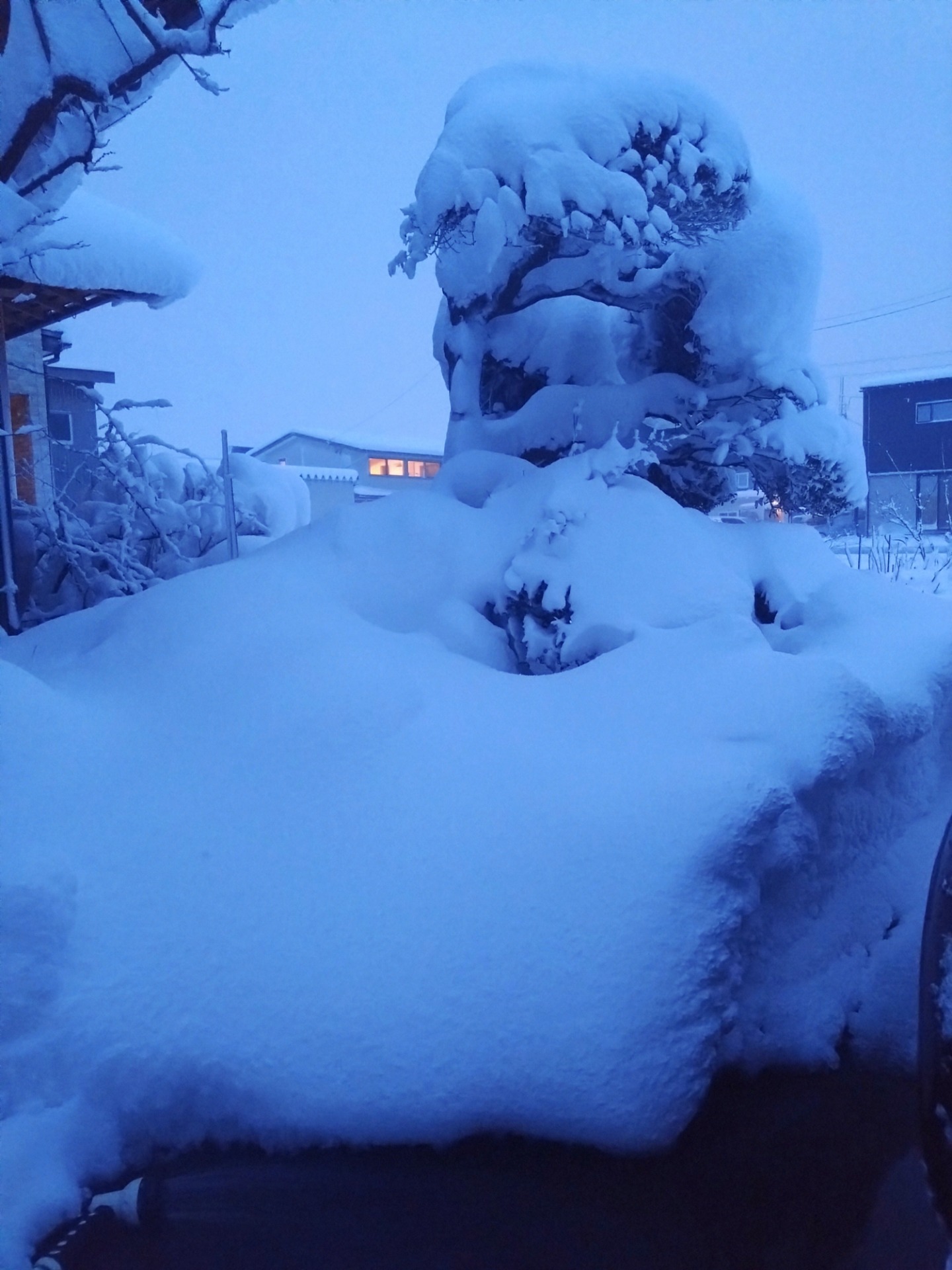 昨日から降り続いている雪で家の周りが覆われている