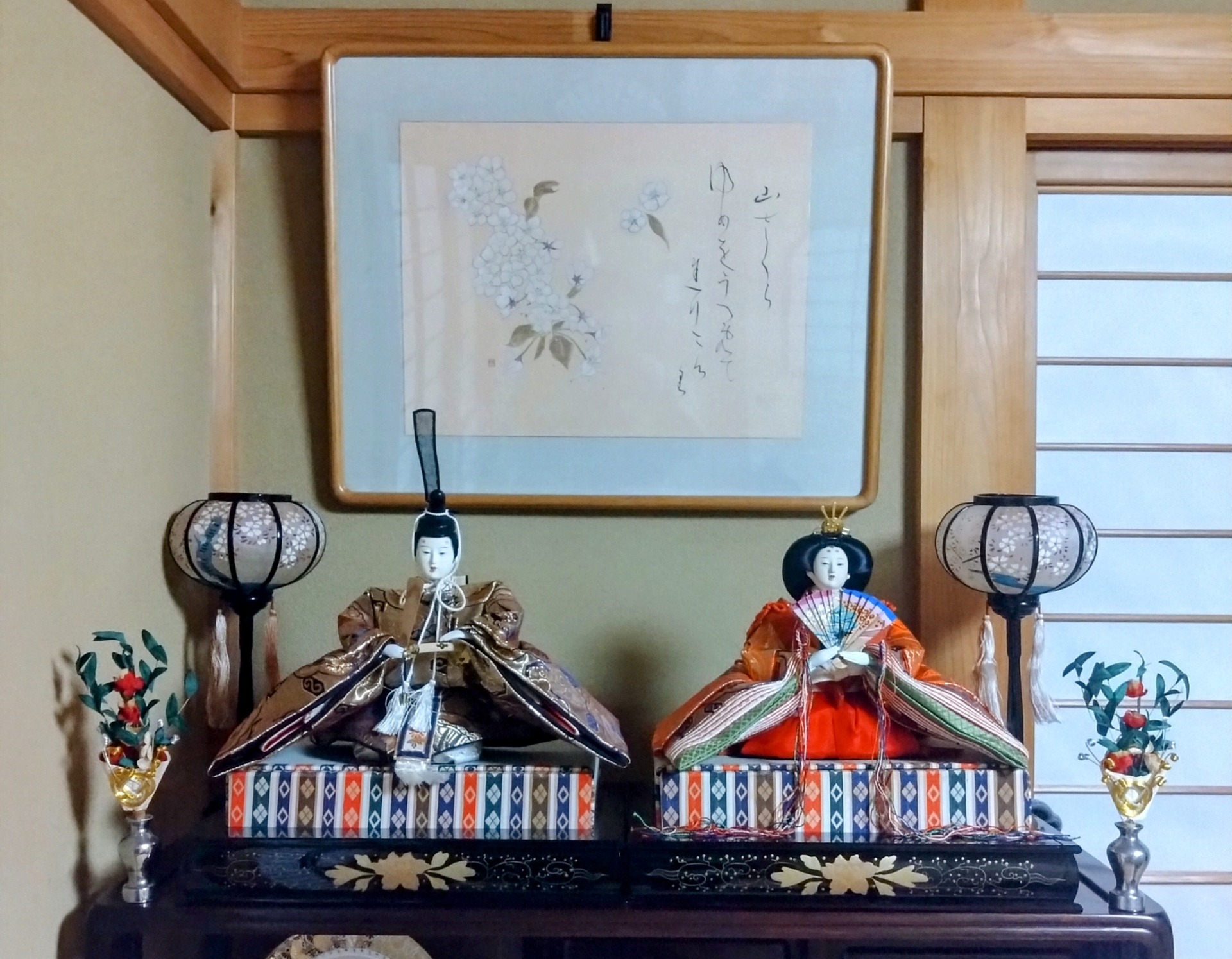 お母さん(義理の母)からいただいた雛人形も飾りました